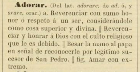 Y esta es la definición de adorar que ofrecía la 17ª edición del mismo diccionario de la Real Academia Española, publicada también en Madrid en 1947: