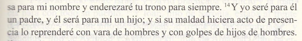 En su contexto original, este pasaje forma parte de la palabra de Jehová que el profeta Natán dijo al rey David sobre su descendencia, Salomón, quien edificaría el Templo en Jerusalén. En 2 Samuel 7:14 LXX se dice sobre esa descendencia que Dios reprendería su maldad con "vara de hombres y con golpes de hijos de hombres". Puesto que este versículo se aplica a Jesucristo en Hebreos 1:5 ¿deberíamos entender, entonces, que Jesús y Salomón son el mismo? ¿Que la maldad de Cristo puede hacer acto de presencia y ser reprendida? ¡Por supuesto que no! Pablo usó en este y en otros lugares un recurso exegético judío llamado pésher o "interpretación", que el Dr. Julio Trebolle define así (pág. 509):