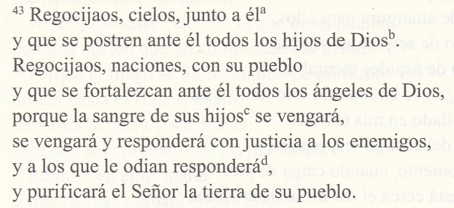 Veamos como vierte estos versículos desde la LXX al español la traducción académica La Biblia Griega. Septuaginta (Sígueme, Salamanca, 4 Tomos, 2008-2015). Primero leamos Deuteronomio 32:43: