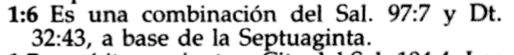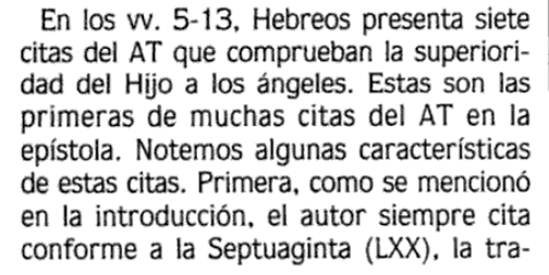 En primer lugar, se nos informa que Hebreos 1:6 es una cita de la Versión de los Setenta o Septuaginta (LXX), probablemente de Deuteronomio 32:43, aunque algunos autores afirman que se trata de una combinación de este versículo del Pentateuco con Salmo 97:7. Así lo hace, por ejemplo, la Biblia de Estudio Ryrie, editada por el profesor, teólogo y escritor evangélico Charles C. Ryrie (Editorial Portavoz, Grand Rapids, 1991; pág. 1720):
