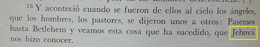 Jehová en su texto para referirse al Dios Verdadero de la Biblia (en Lucas 2:15 y Judas 14).
