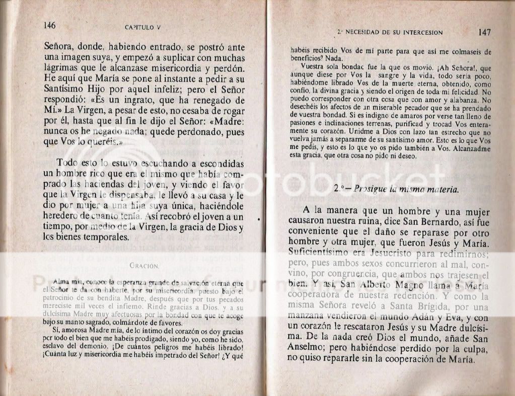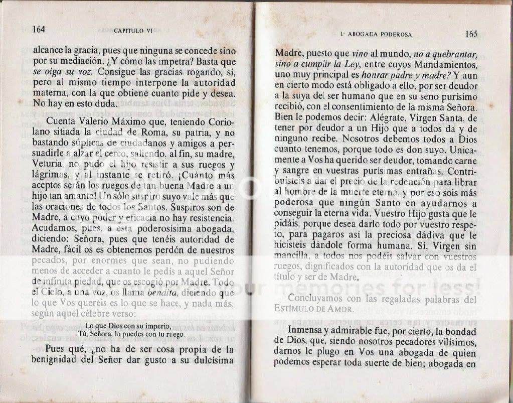 164 Cuanto mas aceptos serán los ruegos de tan Buena Madre a un hijo tan amante ! Un solo suspiro suyo vale mas que las oraciones de todos los Santos. 164 Lo que Dios con su imperio, Tu, Señora, lo puedes con tu ruego. 165 Si, Virgen sin mancilla, a todos nos podéis salvar con vuestros ruegos, dignificados con la autoridad que os da el titulo y ser de Madre.
