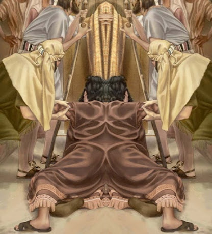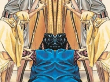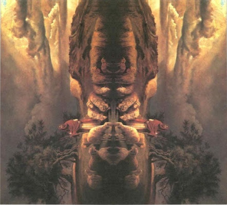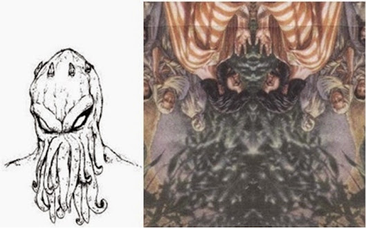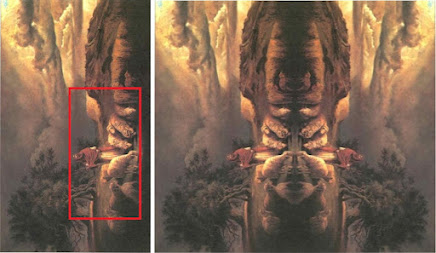 Para descubrir estas imágenes ocultas, bastaba con tomar algunas piezas de arte de los Testigos de Jehová, tal como aparecían impresas en las publicaciones de los Testigos de Jehová y colocar un espejo en un lugar específico dentro de cada pintura, creando una nueva imagen compuesta por la mitad de cada obra vista hacia adelante y hacia atrás al mismo tiempo; una especie de equivalente visual del enmascaramiento inverso en audio. (Suena complicado, pero en realidad no era más que la antigua técnica del espejo de feria aplicada a una obra de arte estática). Y al verlas de esta manera, las nuevas imágenes que se formaban en realidad contenían imágenes compuestas que se asemejaban a cabezas de demonios, rostros torturados, y formas psicodélicas sugestivas de locura y maldad.