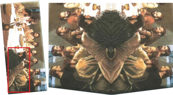 Para descubrir estas imágenes ocultas se toman las piezas de arte de los Testigos de Jehová, tal como aparece impreso en sus publicaciones, y se coloca un espejo en un punto específico dentro de cada obra. Esto crea una nueva imagen compuesta por la mitad de cada pieza vista de frente y de atrás a la vez; una especie de equivalente visual al enmascaramiento inverso en audio. (Suena complicado, pero en realidad no es más que la antigua técnica del espejo de feria aplicada a una obra de arte estática). Y al observarlas de esta manera, las nuevas imágenes formadas contienen en realidad imágenes compuestas que se asemejan a cabezas de de demonios, rostros torturados, hombres decapitados, calaveras gritando y formas psicodélicas sugestivas de locura y maldad.