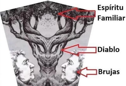La nueva imagen que se forma se asemeja a la cabeza de un demonio o diablo. Aparece también una especie de "espíritu familiar" flotando sobre la cabeza de este diablo, y un par de mujeres que observan, a manera de brujas, al demonio: